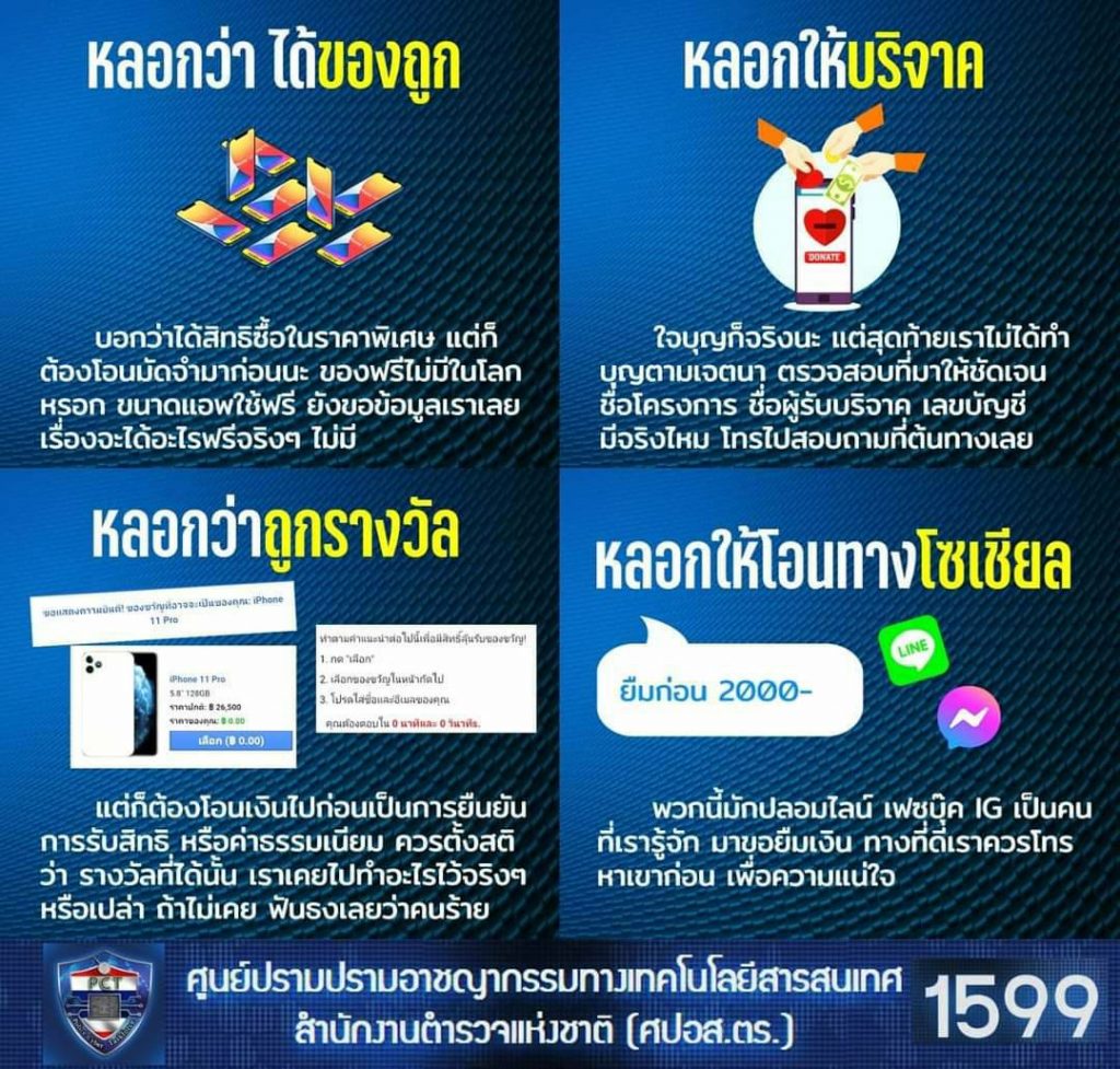 หลอกว่าได้ของถูก หลอกให้บริจาค หลอกว่าถูกรางวัล หลอกให้โอนทางโซเชียล