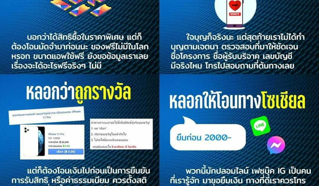 หลอกว่าได้ของถูก หลอกให้บริจาค หลอกว่าถูกรางวัล หลอกให้โอนทางโซเชียล