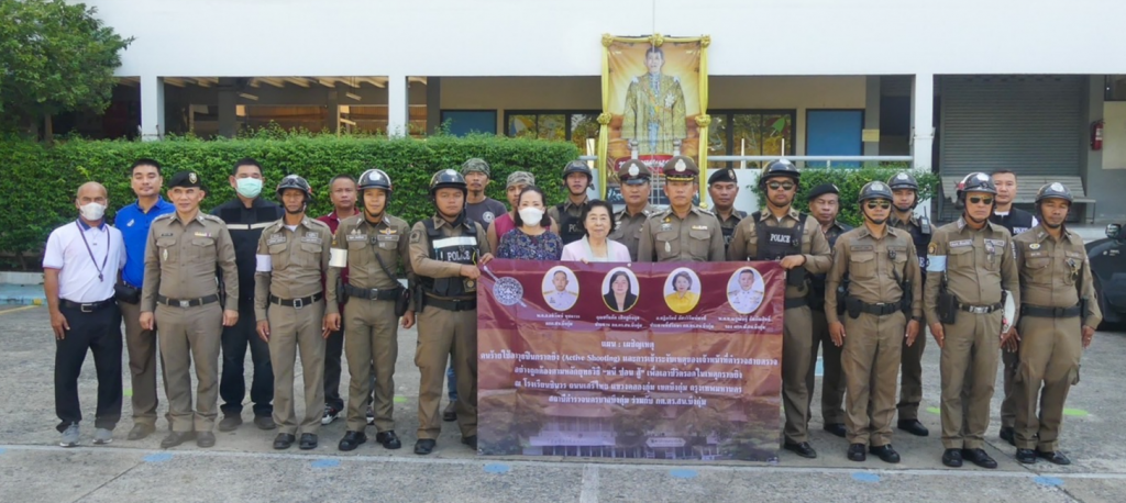ร่วมกับโรงเรียนชินวร ซักซ้อมแผนเผชิญเหตุคนร้ายใช้อาวุธปืนกราดยิง (Active Shooting) และการเข้าระงับเหตุของเจ้าหน้าที่ตำรวจสายตรวจอย่างถูกต้องตามหลักยุทธวิธี “หนี ซ่อน สู้” เพื่อเอาชีวิตรอดในเหตุกราดยิง (เด็กอนุบาล)โดยมี อ.ชฎิลรัตน์ อัศววิวัฒน์พงศ์ ประธานที่ปรึกษา กต.ตร.สน.บึงกุ่ม, น.ส.ภัทราภรณ์ ชวสินธุ์ ผู้อำนวยการโรงเรียนชินวร คณะครู นักเรียนโรงเรียนชินวร เข้าร่วมกิจกรรมการซักซ้อมดังกล่าว