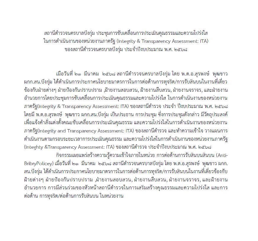O18 ประกาศนโยบายต่อต้านการรับสินบน (Anti-Bribery Policy) สน.บึงกุ่ม